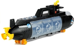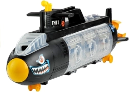 Jucăria este alcătuită dintr-o structură neagră combinată cu detalii galbene și autocolante și dintr-o parte transparentă cu compartimente pentru vehicule. O parte este deja completată – în fiecare compartiment se află un vehicul interesant, care va diversifica cu siguranță joaca. Cealaltă parte a sortatorului este liberă, astfel încât băiatul își va putea depozita mașinuțele preferate într-un singur loc. Jucăria este montată pe rotițe pivotante mici, așa că te poți juca împingând-o pe podea. Submarinul are multe detalii care creează impresia unei mici copii a unei mașinării reale. Poți observa elicea de navă, plasată la capătul structurii, precum și periscopul, care permite urmărirea a ceea ce se întâmplă la suprafața apei. Sortatorul transparent este decorat cu hublouri, ceea ce arată fantastic. Jucăria principală, împreună cu vehiculele incluse, este fabricată din plastic durabil și, mai ales, solid, rezistent la deteriorările ce pot apărea în timpul jocului.
