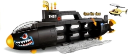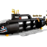 Un submarin mare, care arată ca un rechin înfricoșător, ascunde în interior numeroase elemente interesante. Ce se află în el? Mașinuțe de diferite tipuri și un elicopter! Submarinul cu sortator dublu față-verso va fi un cadou senzațional pentru copilul care iubește vehiculele și mașinăriile subacvatice.
