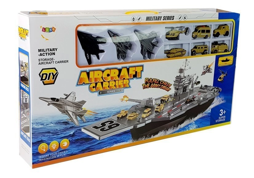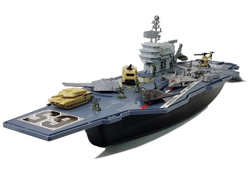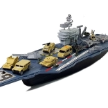 Vă prezentăm un portavion pentru copiii cărora le place să se joace de-a soldații și care au, în același timp, o pasiune pentru nave, deoarece aceasta este cea mai bună parte a setului. Setul dezvoltă imaginația, creativitatea și le permite micilor soldați să creeze planuri de luptă. Trebuie să îl încercați singuri, această jucărie interesantă vă va introduce în lumea marinei militare. Tunurile mobile și obuzierele de pe puntea navei fac joaca și mai realistă. Jucăria se remarcă prin dimensiunea sa, având o lungime de până la 86 cm.