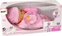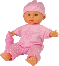 Păpușa este îmbrăcată într-o pijama roz cu buline. Pe cap are o căciuliță adorabilă. Întregul set se potrivește perfect. La apăsarea trunchiului păpușii se aud sunete specifice unui bebeluș: plâns, gângurit, cuvântul „mama” etc. La fiecare apăsare te surprinde cu alte sunete. Păpușa are brațe și picioare mobile, hainele sunt detașabile, ceea ce permite schimbarea garderobei.