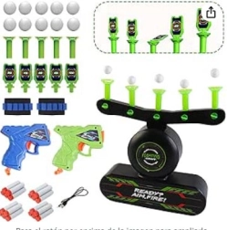 Pistolul și săgețile din spumă îți permit să îți testezi precizia loviturilor asupra mingiuțelor plutitoare.