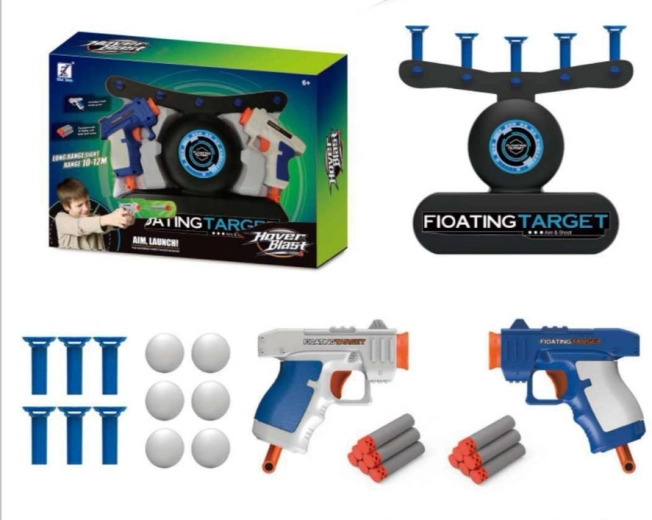 Setul permite montarea unei ținte care, după conectare, menține bilele suspendate în aer.