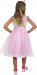 Rochia roz de prințesă cu motiv de lebădă transformă orice fetiță într-un personaj delicat de poveste. Tulul ușor, cu petale, oferă fustei un aspect vaporos, în timp ce juponul satinat menține forma și asigură confort la purtare. Partea superioară este decorată cu o ilustrație elegantă de lebădă, care accentuează designul fermecător.