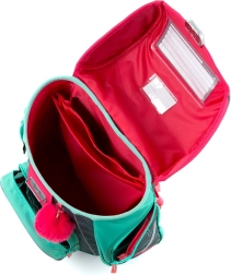 Un compartiment spațios găzduiește toate necesarele pentru elevii din clasele I și a II-a, buzunarul frontal este ideal pentru gustare, iar baza rigidă protejează conținutul împotriva răsturnării și vărsării. Catarama de siguranță facilitează închiderea, iar elementele reflectorizante sporesc vizibilitatea copilului în drum spre și de la școală.