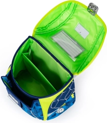 Rucsacul este echipat cu elemente reflectorizante, un organizator intern și numeroase buzunare pentru organizarea materialelor școlare.