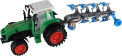 Descoperiți tractorul pentru copii care îmbină distracția cu detalii realiste ale utilajelor agricole. Tractorul cu mecanism inerțial pornește înainte cu o împingere ușoară, iar remorca și plugul detașabile le permit copiilor să alterneze munca pe câmp cu transportul încărcăturii. Dimensiunea mai mare, aprox. 53 cm, garantează o experiență grozavă de joc.