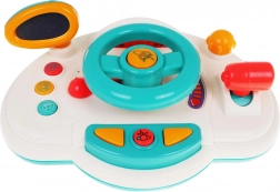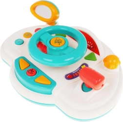 Învârtiți volanul, priviți în oglinda ajustabilă și „schimbați vitezele” cu maneta – sprijin excelent pentru motricitatea fină și grosieră.