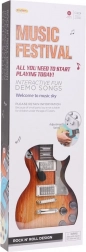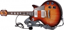 Oferă-le copiilor primii pași în lumea muzicii cu o chitară electrică în culoare maro. Setul imită fidel un instrument real, se manevrează ușor și, datorită acompaniamentelor preînregistrate, motivează rapid la cântat și interpretare cu microfonul inclus.