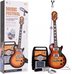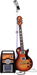 Acest set muzical creativ este o alegere ideală pentru copiii de la 3 ani în sus. Chitara electrică în finisaj maro arată ca un instrument real; o conectați la amplificator cu cablul inclus, iar copilul poate începe imediat să cânte și să vocalizeze la microfonul pe stativ stabil. Amplificatorul permite reglarea separată a volumului chitarei și microfonului, oferă intrare pentru chitară, microfon și, de asemenea, pentru MP3 extern. Luminițele colorate care clipesc pe ritm creează atmosfera potrivită.