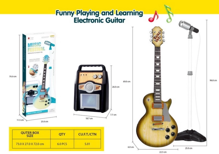 Pentru a motiva primele sesiuni de cântat, sunt disponibile ritmuri predefinite și melodii de acompaniament, nu lipsesc reglarea volumului și cureaua ajustabilă pentru purtarea confortabilă a chitarei. Setul dezvoltă motricitatea fină a degetelor, auzul muzical și simțul ritmului, oferind în același timp multă distracție pentru reprezentații solo și concerte în familie.