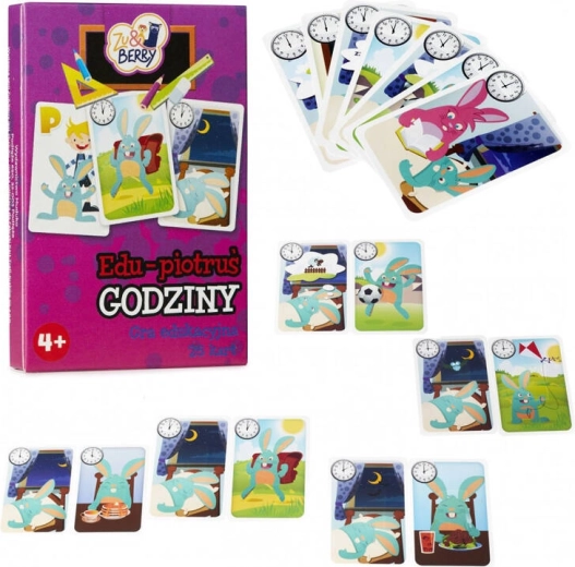 Versiunea educativă a clasicului joc Piotruș dezvoltă gândirea logică, spiritul de observație și abilitatea de asociere. Copiii potrivesc cărți cu aceeași oră pe ceas, dar cu momente diferite ale zilei – de exemplu, la 2:00 putem dormi liniștiți sau lua prânzul. Jocul este distractiv și, în același timp, îi învață să citească ora pe ceasuri analogice.
