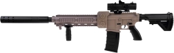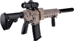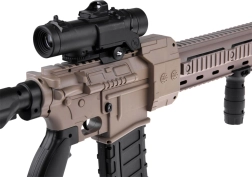 - Încărcare automată, tragere electronică, optică glisantă, mâner frontal glisant, curea de umăr