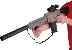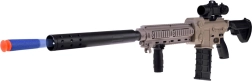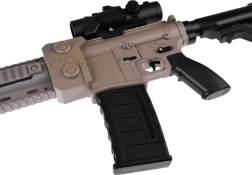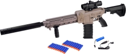 Construcția ușoară din plastic rezistent și mânerul frontal reglabil sporesc confortul în timpul jocului. Optica glisantă ajută la lovituri mai precise pe distanțe mai lungi, în timp ce magazia detașabilă permite alimentarea rapidă cu „muniție”. Pachetul include acumulator 3,7 V/500 mAh și încărcător, astfel încât poți porni în acțiune imediat după încărcare.