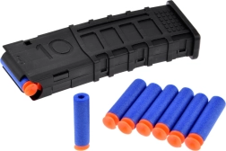 Magazia detașabilă cu eliberare ușoară prin buton și săgețile din spumă moale permit reîncărcare rapidă și joacă în siguranță.
