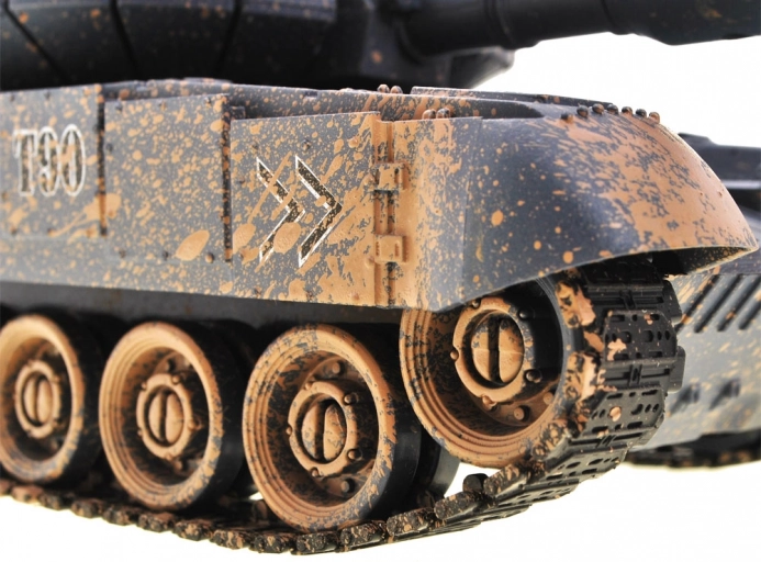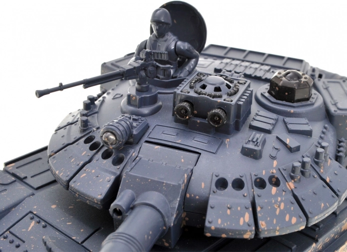 Bucurați-vă de acțiune militară realistă cu tancul T90 controlat de la distanță, care trage, se deplasează și luminează. Acest model are un camuflaj elegant grafit, iar turela sa rotativă se poate întoarce la 180 de grade în ambele direcții, asigurând un unghi de tragere de 360 de grade. Tancul este echipat cu efecte luminoase impresionante, care arată grozav în încăperi întunecate. În plus, are un capac deschis al turelei, unde puteți plasa figurina tanchistului cu mitralieră, inclusă în pachet.