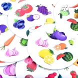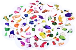 Un joc amuzant de atenție cu cărți rotunde pline de ilustrații colorate cu fructe și legume. Scopul este să găsești cât mai repede simbolul identic dintre cărți și să îl spui cu voce tare. Jocul antrenează reacțiile rapide, spiritul de observație și concentrarea, fiind grozav pentru petreceri, excursii și seri în familie. În pachet găsești 30 de cărți și te așteaptă mai multe mini-jocuri pline de suspans pentru 2–5 jucători de la 4 ani.