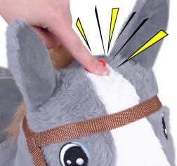 Calul este realizat din cauciuc gros acoperit cu un înveliș de pluș moale. Este creat cu atenție la detalii, precum ochii brodați, căpăstrul și șaua din material moale. Atrage atenția și coama și coada groasă de culoare maro. Urechile mari, pe care copilul le poate prinde, facilitează menținerea echilibrului în timpul "călăriei".