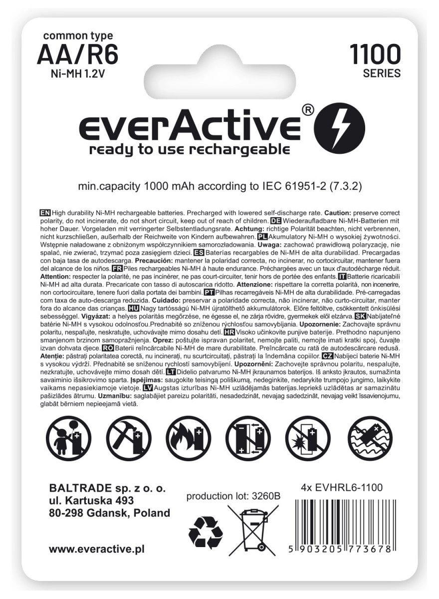Descoperă acumulatorii R6 AA 1100 mAh inovativi de la marca EverActive, parte a gamei Infinity Line. Aceste baterii reîncărcabile au fost dezvoltate cu tehnologia „ready to use”, ceea ce înseamnă că sunt preîncărcate și gata pentru utilizare imediată: