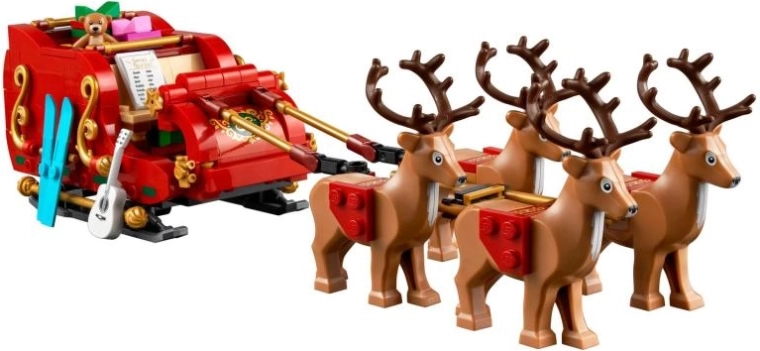 Construiți săniile LEGO iconice trase de patru reni și porniți cu Sfântul Nicolae în livrarea cadourilor. Setul oferă detalii bogate, de la harnasamentele ornate ale renilor până la cockpitul elaborat cu panou de control. Datorită numeroaselor accesorii și cadouri, setul este excelent pentru povești imaginative și ca decorațiune de Crăciun.