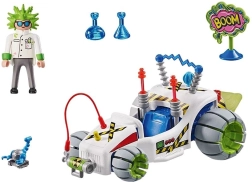 Pornește la start cu profesorul năzdrăvan și kartul său științific! Datorită mecanismului cu tragere înapoi (pull-back), vehiculul țâșnește înainte, în timp ce eprubetele, antrenarea „cu reacție” și echipamentele electrice adaugă fiecărei curse o doză zdravănă de imaginație. Caroseria futuristă poate fi personalizată cu diverse accesorii pentru a crea o mașină de curse unică.