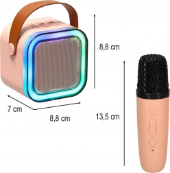 Bucurați-vă de cântat spontan oriunde – difuzorul compact roz, cu curea din piele, se transportă ușor și oferă sunet clar cu o putere de 6 W. Iluminarea RGB cu 5 moduri subliniază atmosfera petrecerii, iar 2 microfoane fără fir permit cântatul în doi, fără limitarea cablurilor.