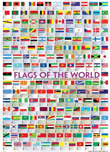 Construiți un puzzle fascinant cu steaguri din întreaga lume și îmbunătățiți-vă cunoștințele despre fiecare țară. Acest puzzle nu doar că oferă distracție, dar vă și învață date importante, cum ar fi numele statului în engleză, populația, suprafața în kilometri pătrați și capitala. Datorită formelor neconvenționale ale pieselor și tăieturii unice EUROGRAPHICS, asamblarea devine mai dificilă și oferă o provocare mai mare decât puzzle-urile clasice. Acest puzzle este ideal pentru iubitorii de geografie și pentru cei care doresc să-și testeze răbdarea și atenția la detalii.