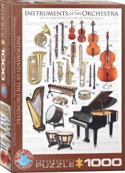 Descoperă fascinanta lume a muzicii cu puzzle-ul EUROGRAPHICS de 1000 de piese, care prezintă instrumente de suflat, cu coarde, cu clape, idiofoane și membranofone pe fundalul unei partituri stilizate. Datorită formelor originale și neregulate ale pieselor și dificultății sporite, te vei bucura de ore întregi de distracție și provocare.