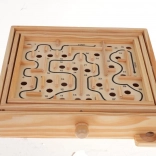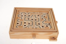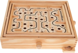 Cufundați-vă în lumea distracției cu jocul de labirint din lemn, care oferă o experiență unică de joc și în același timp dezvoltă abilități. Acest joc este conceput pentru a stimula concentrarea și coordonarea mână-ochi. Cu ajutorul butoanelor rotative de pe laterale, puteți înclina cu ușurință tabla de joc și muta bila.