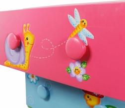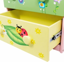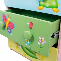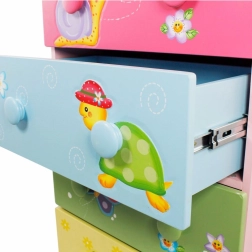 Fiecare sertar este decorat cu un motiv original de animal sau floare, făcând ca această comodă să fie nu doar un spațiu de depozitare, ci și un joc pentru copii.