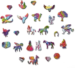 Descoperiți magia asamblării cu puzzle-ul din lemn Unicornul Curcubeu, care este proiectat pentru entuziaștii de toate vârstele. Această puzzle oferă: