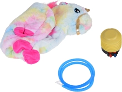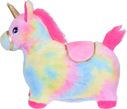 Acest unicorn săltăreț combină un corp gonflabil robust din cauciuc cu o husă din pluș moale, plăcută, în culorile curcubeului. Detaliile realizate cu grijă, precum ochii brodați, frâul auriu, șaua textilă moale cu tiv auriu și coama și coada roz, îi vor cuceri pe copii. Între urechi este ascuns un fluieraș care face fiecare săritură și mai distractivă.
