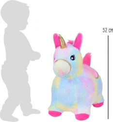 Săritul pe unicorn întărește mușchii și antrenează stabilitatea. Urechile mari servesc drept mânere sigure, iar între urechi se află un fluieraș amuzant.