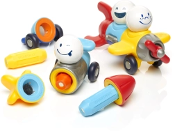 Setul le permite copiilor să asambleze diverse mijloace de transport după imaginație. Combinați piesele și creați variante noi în doar câteva clipe.
