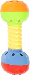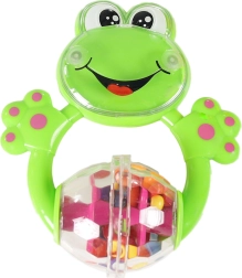 Zornăitoare ușoară, cu râs de broscuță și biluțe în centru transparent, dezvoltă auzul și coordonarea mână–ochi.