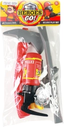 Set de joacă pentru micii pompieri curajoși, care conține diverse instrumente pentru distracție și dezvoltarea abilităților.
