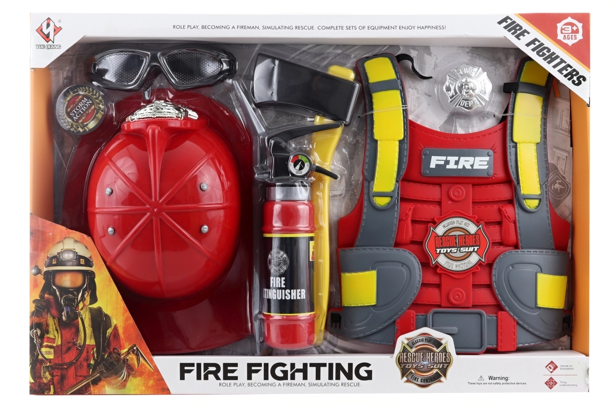 Deveniți un mic erou cu setul complet de pompier pentru copii! Include cască, ochelari, stingător, secure, insignă și vestă pentru o experiență de joc autentică. Ideal pentru copii de la 3 ani, fabricat din plastic rezistent și livrat într-un ambalaj cadou practic.