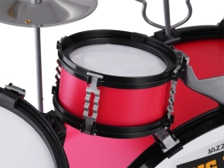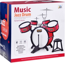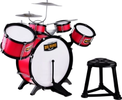 Acest set de tobe pentru copii este o alegere excelentă pentru micul rocker din viaţa dumneavoastră. Setul include cinci tobe, trei cinele, două beţe şi un scaun pentru micii muzicieni. Întregul set este realizat din plastic, dar arată foarte realist, făcându-l o jucărie ideală pentru dezvoltarea abilităţilor muzicale şi simţului ritmic al copiilor.