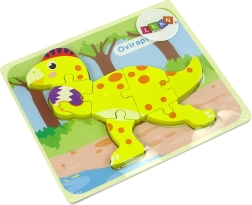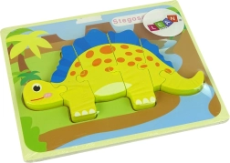 Puzzle din lemn distractiv cu tematică de dinozauri pentru copii de la 3 ani. Piesele din lemn de calitate au grosime de 5 mm pentru o prindere ușoară, culori vii și forme simple care susțin motricitatea fină, concentrarea și memoria. La alegere stegozaur sau oviraptor. Jucărie sigură conform EN71.