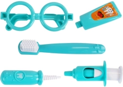 Instrumentele medicale din set sunt o reproducere fidelă a uneltelor reale, iar formele lor ușoare și simplificate sunt adaptate special mânuțelor copiilor. Acum toți membrii familiei se pot bucura de dinți frumoși și albi când micul dentist începe să aibă grijă de prietenosul hipopotam.