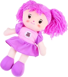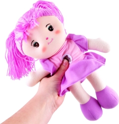Păpușa din stofă Zuzia încântă prin designul fin în nuanțe de mov – de la păr până la rochiță și botinuțe. Este moale, ușoară și ușor de ținut în mânuțele mici, fiind grozavă pentru liniștire la somn sau în călătorii.
