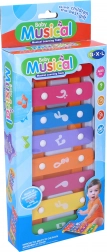 Jucărie muzicală 2 în 1 distractivă – xilofon cu banc de ciocănit cu lungimea de 26 cm. Susține ritmul, coordonarea mână–ochi și aduce multă bucurie în descoperirea sunetelor.