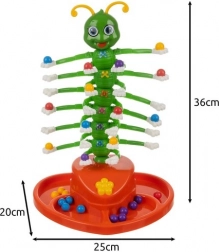 Joc de îndemânare amuzant pentru copii și părinți, în care biluțele colorate se așază cu ajutorul pensetelor pe „mânuțele” unei centipede în mișcare. Jocul dezvoltă motricitatea fină, coordonarea mână–ochi și concentrarea. Datorită execuției sigure, manevrelui ușor și nivelului de dificultate adaptabil, este potrivit pentru copii de aproximativ 4–10 ani.