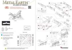 Din plăcuțe pătrate de oțel (11 x 11 cm) cu piese ale unor monumente mondiale, mijloace de transport celebre, instrumente muzicale sau animale, vor prinde viață în mâinile tale modele fascinante, realizate cu un nivel ridicat de detaliu. Aspectul autentic al puzzle-urilor 3D METAL EARTH este obținut datorită gravurii laser detaliate.
