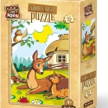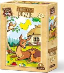 Un puzzle din lemn adorabil, cu o căprioară-mamă, îi va încânta pe micii iubitori ai naturii. Piesele sunt ștanțate din placaj african din lemn, elastic, iar după asamblare formează o imagine de aproximativ 16 × 24 cm. Ideal pentru dezvoltarea motricității fine, a răbdării și a imaginației vizuale. 25 piese, placaj din lemn rezistent, motiv natural superb.