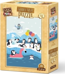 Puzzle din lemn cu motivul pinguinilor drăgălași conține 25 de piese realizate cu atenție din lemn african, ideal pentru asamblare distractivă.