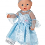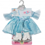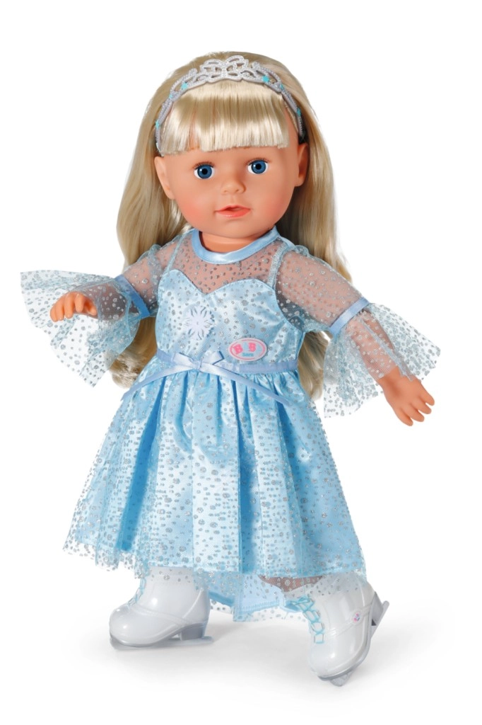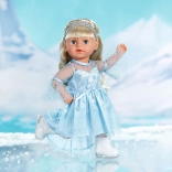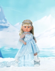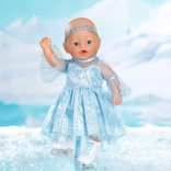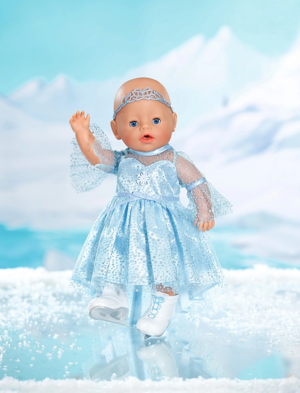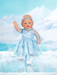 Setul elegant pentru păpușile BABY born de 43 cm aduce farmecul unei lumi de iarnă în joaca de zi cu zi. Rochia ușoară și strălucitoare, cu suprapunere fină, se îmbracă ușor, iar diadema menține coafura perfectă la fiecare piruetă. Ghetuțele albe în stil patine susțin imaginația și poveștile copiilor despre patinaj artistic.
