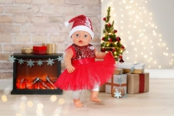 BABY born adoră să se îmbrace festiv de Crăciun. Și ce poate fi mai frumos decât o rochie roșie cu paiete și fustiță din tul, colanți argintii și o căciulă de Crăciun care încălzește urechile?