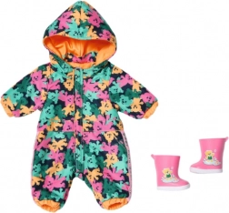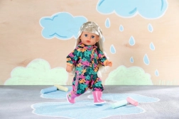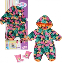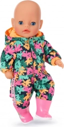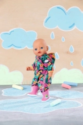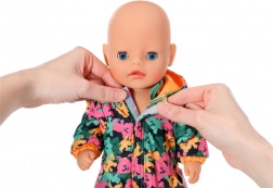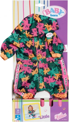 Acest combinezon colorat pentru păpușa BABY BORN de 36 cm este conceput pentru îmbrăcare confortabilă și joacă zilnică. Datorită croielii easy fit și fermoarului frontal, copiii îl pot îmbrăca singuri. Are glugă, manșete elastice și cizme asortate care mențin picioarele păpușei uscate.