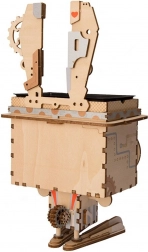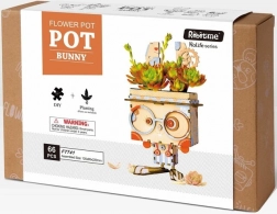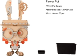 Datorită sistemului cu fante și clapete, totul se potrivește perfect la locul său. După asamblare, inserezi ghiveciul din plastic inclus, cu tavă de scurgere, care protejează suprafața mobilierului. Iepurașul completează minunat florile, ierburile aromatice sau cactusii și aduce în interior o notă jucăușă „steampunk”, tipică pentru ROBOTIME.