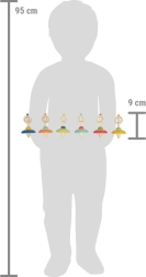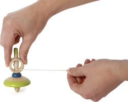 Acest titirez vesel, într-o combinație de lemn natural și culori puternice, este o jucărie atemporală care îi distrează pe copii acasă și în călătorii. Datorită mecanismului cu șnur se învârte ușor și, în același timp, îi motivează pe copii să-și antreneze îndemânarea și concentrarea. Calitatea execuției din lemn masiv garantează durabilitate și joacă în siguranță.